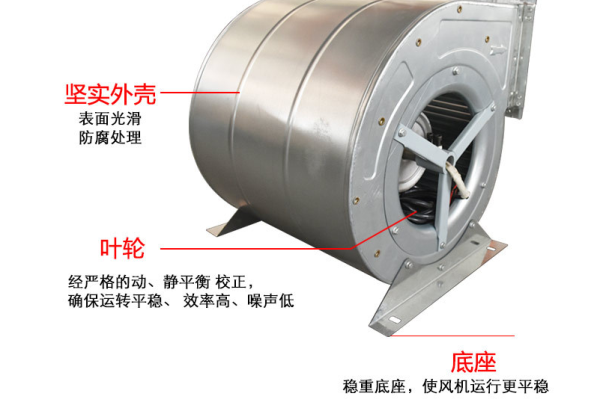 葉 輪:前向多翼園弧型葉片與前盤、中盤鉚接成型,經嚴格的動、靜平衡 校正,確保運轉平穩、效率高、噪聲低。