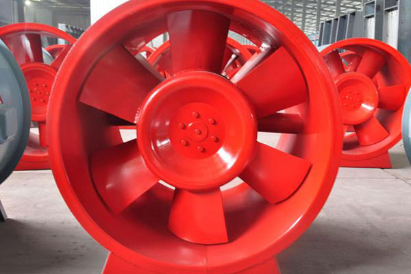 3、消防排煙風機可在葉輪靜止時通過調整葉片安裝角度調節風機的運行點、還可以通過改變葉片數量來調節風機性能范圍。